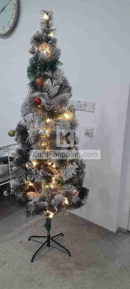 سڵاو ڕێز .. ئه م داری كریسمسه مان هه یه بۆفرۆشتن تازه یه به س ساڵی پار به كارهاتوە واتە یە ك ساڵ دانراوە / به رزى .سم مه تره